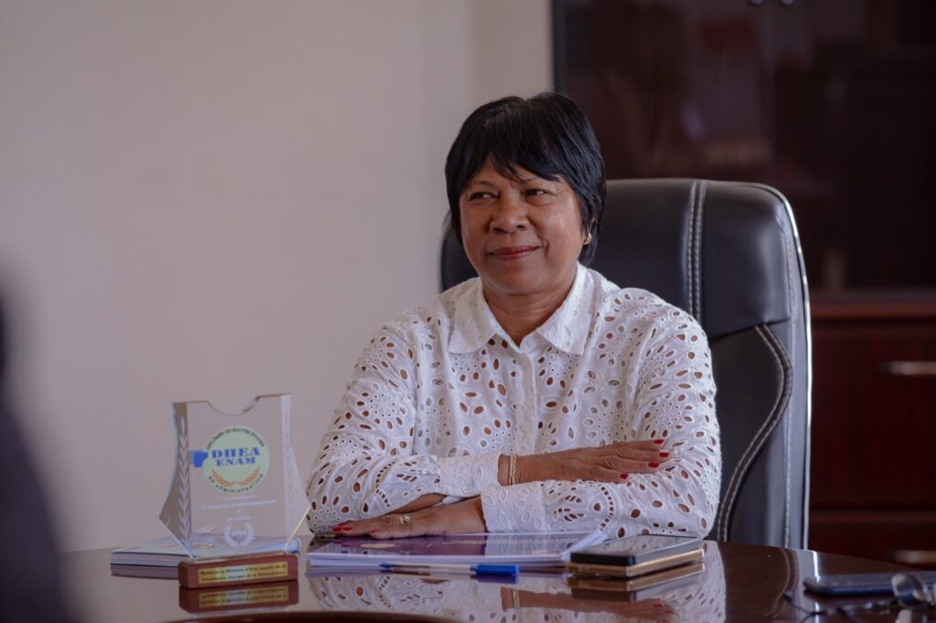 Hoy ny Minisi-panjakana,Me Hanitra Razafimanantsoa, raha nandray fitenenana: