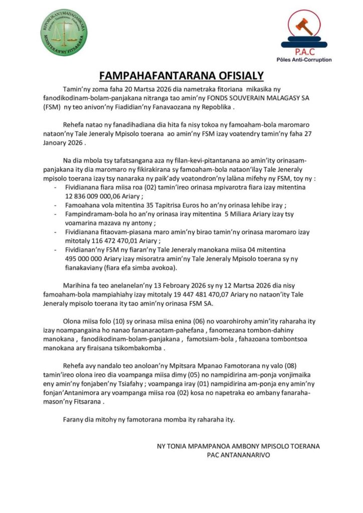 Taorian’ny fitoriana napetraky ny Fiadidiana ny Fanavaozana ny Repoblika dia niroso tamin’ny fanadihadiana ny teo anivon’ny PAC Rehefa vita ny Fanadihadiana nataon’ny Mpitsara mpanao famotorana dia : Olona 5 no naiditra am-ponja vonjimaika eny Tsiafahy Voampanga 1 no naiditra am-ponja vonjimaika eny Antanimora Voampanga 2 no napetraka eo ambany fanaraha-maso n’ny Fitsarana